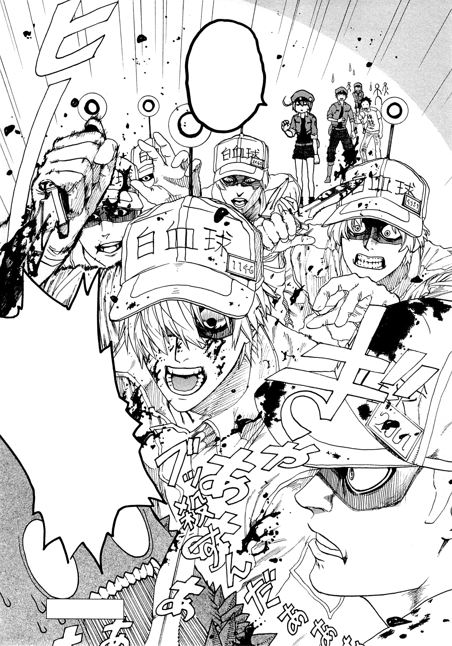 U 1146 cells at work black white blood cell- · This includes red and white blood cells, with the story itself focusing on red blood cell A803 and white blood cell U1146 The manga began serialization in January 15 and is currently ongoing · It was another day inside the human body No germs were sighted or any pathogens troubling the city The cells were in a peaceful situation however Helper T Cell spotted an abnormal foreign cancer in the body Red Blood Cell (Æ3803) was scolded by her senpai (AA5100) for failing on delivering the carbon dioxide
